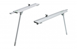 Left and right foldout extension legs with tool free connection to the Kapex. Each leg provides stock support with integrated flip stop, measurement scale and adjustable leg. Each leg expands from 1480 mm to 2400 mm includes metric scale.